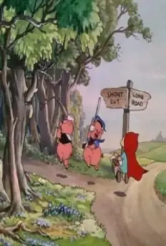 мультфильм «Плохой, большой волк» (1934) представляет собой увлекательное повествование: Красная шапочка вместе с тремя поросятами идут в гости к бабушке, а по дороге они встречают коварного серого волка....