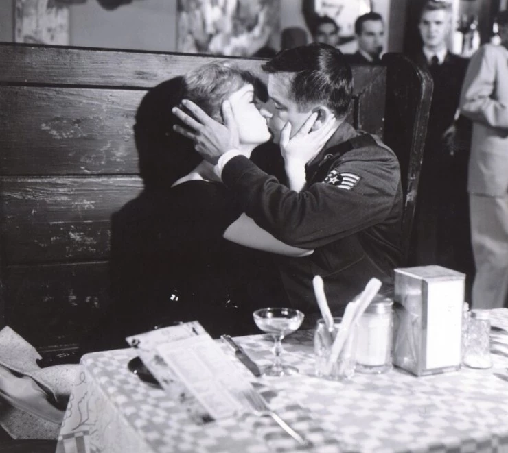 Фильм «Все началось с поцелуя» (1959) представляет собой увлекательное повествование: Сержант ВВС Джо Фицпатрик встречает красивую модель Мэгги Патнэм и женится на ней накануне его отправки в Испанию....